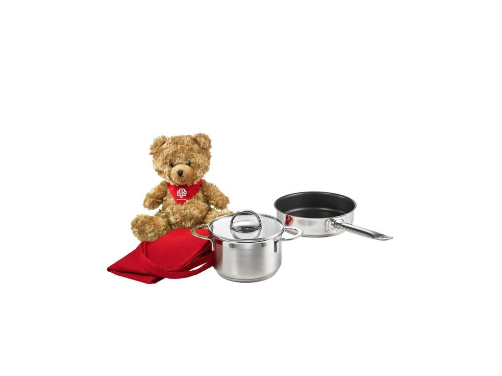 Starter Set Little Lilly od sus schulte ufer je 5dílná sada určená pro děti které se učí vařit nebo si hrají v kuchyni. Sada obsahuje mini hrnec na maso (14 cm) mini pánev (16 cm) dále plyšového medvídka zástěru a kuchařku "Kochtopf der Kulturen" (která je v Německém jazyce). Je to ideální set pro mladé kuchaře.