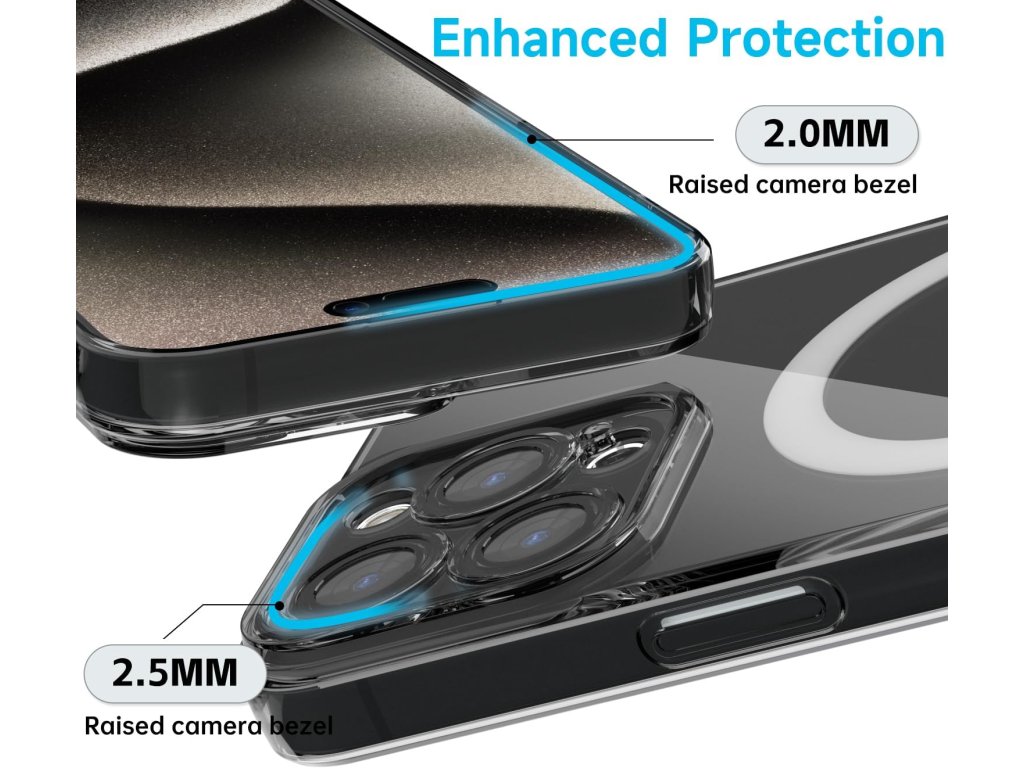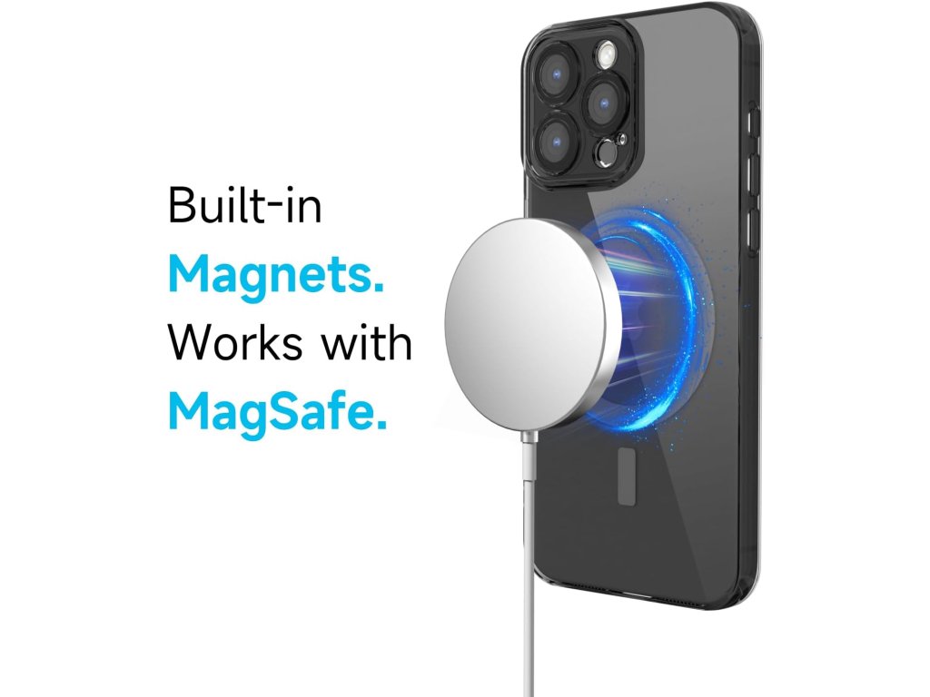 Tento průhledný Magsafe kryt je navržený speciálně pro iPhone 15 Pro Max. Je vybaven silnými magnety pro bezpečné a rychlé bezdrátové nabíjení. Díky svému tenkému a lehkému designu se dobře drží v ruce. Kryt má zvýšené okraje, které chrání displej i fotoaparát před poškrábáním.