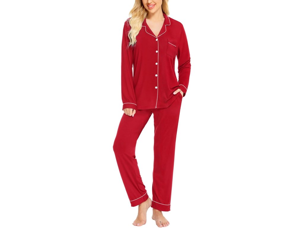 Dámské pyžamo značky Swomog ve velikosti XXL je navrženo pro maximální pohodlí a volnost pohybu. Set se skládá z horního dílu v uvolněném stylu a dlouhých kalhot. Vrchní díl s dlouhým rukávem disponuje elegantním límcem, náprsní kapsou a kontrastním lemováním, které dodává pyžamu sofistikovaný vzhled. Díky zapínání na knoflíky je tento model velmi praktický, což ocení zejména ženy v období po porodu nebo při kojení.