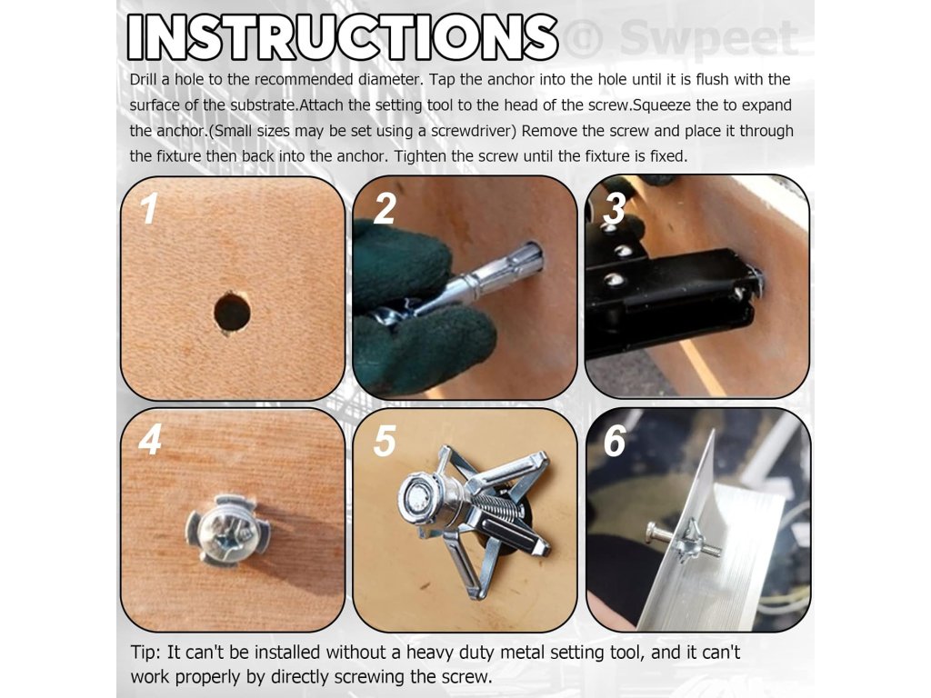 Získejte spolehlivé a pevné upevnění do tenkých a dutých stěn s touto sadou 12 kusů rozpěrných kotev M6 x 25 (Jack Nuts) od značky Swpeet. Tyto inovativní kotvy, známé také jako „okvětní matice“, jsou ideální pro situace, kde standardní hmoždinky selhávají, například při montáži do sádrokartonu, dutých stěn nebo plechu.