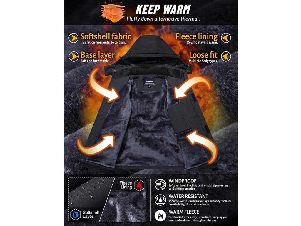 Bunda TACVASEN kombinuje funkčnost, teplo a praktické detaily. Díky vodoodpudivému materiálu, hřejivé podšívce a odnímatelné kapuci je ideální volbou pro zimní sporty i každodenní nošení v chladném počasí.
