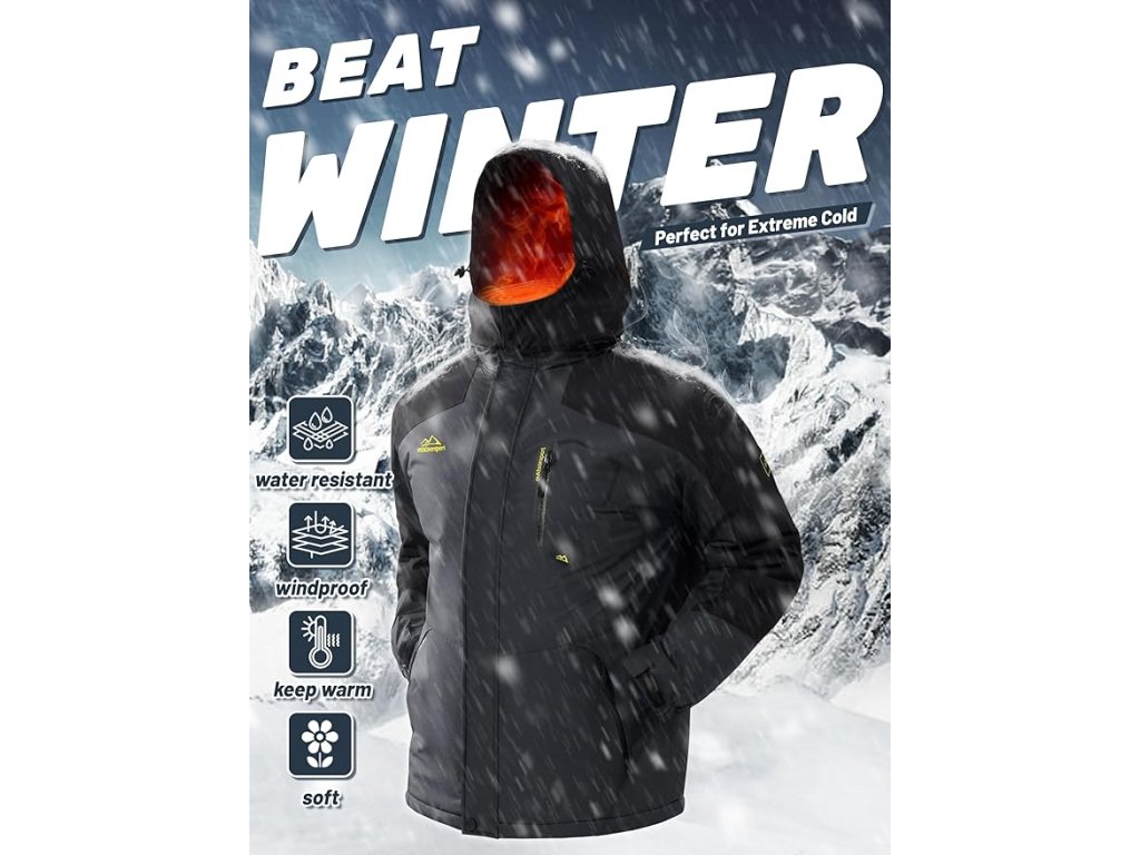 TACVASEN pánská zimní outdoorová bunda s kapucí – vodoodpudivá lyžařská / snowboardová bunda (vel. XL)