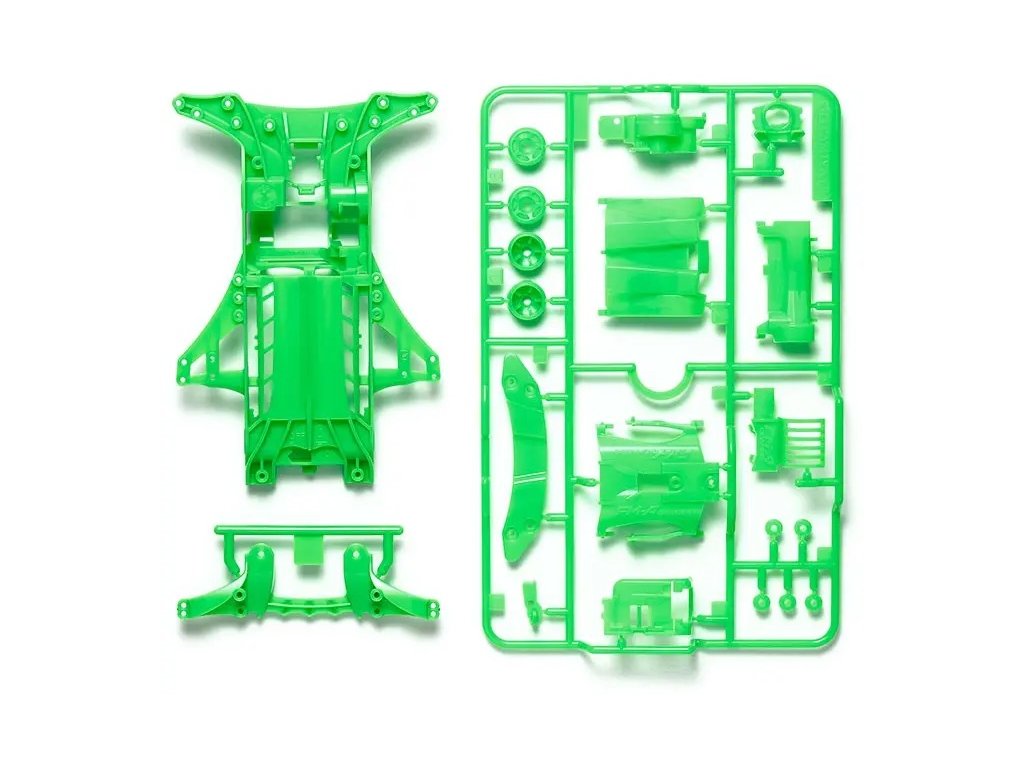 Sada podvozku FM-A Fluorescent-Color (zelená) nabízí skvělou možnost, jak dodat vašemu modelu Mini 4WD výrazný a jedinečný vzhled. Jedná se o volitelné díly, které vyžadují sestavení, což umožňuje plné přizpůsobení vašeho modelu.