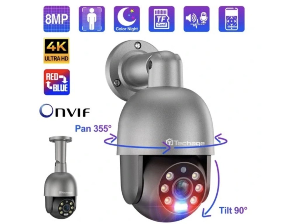 Techage venkovní IP kamera 8MP PoE PTZ, grafitová