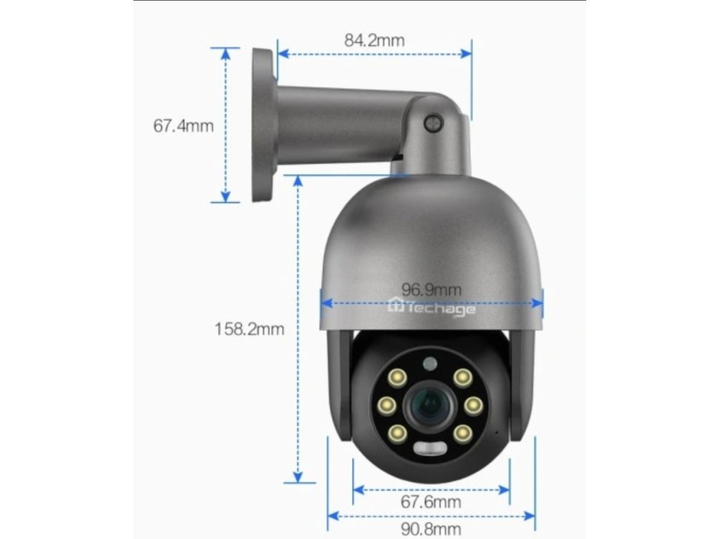 Tato IP kamera Techage s rozlišením 8MP je ideální pro monitorování venkovních prostor. Díky technologii PoE (Power over Ethernet) je instalace snadná, protože pro napájení a přenos dat stačí jeden kabel. Kamera nabízí otáčení hlavy PTZ a pokročilý noční režim.