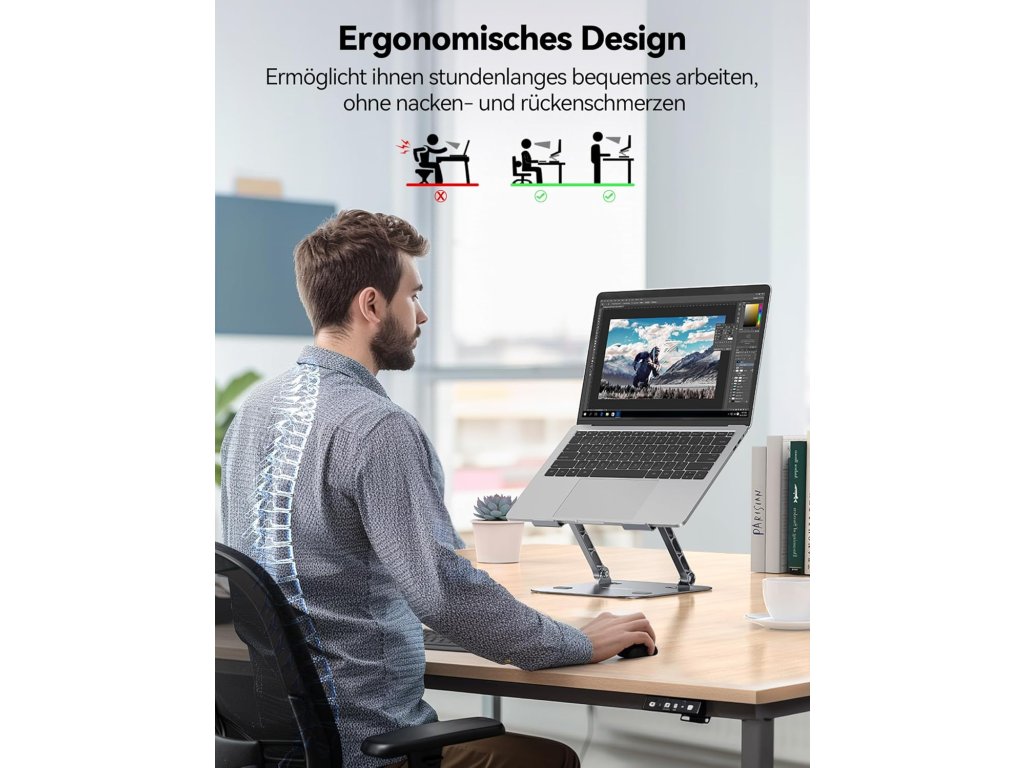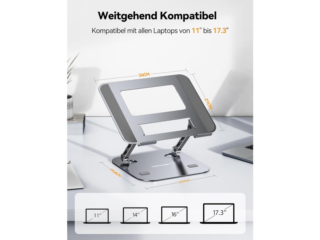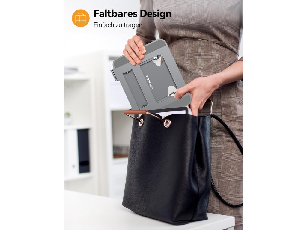Nastavitelný stojan na notebook TECKNET pro lepší držení těla. Skládací, přenosný a dobře větraný. Hodí se pro notebooky 11-17,3" a tablety.