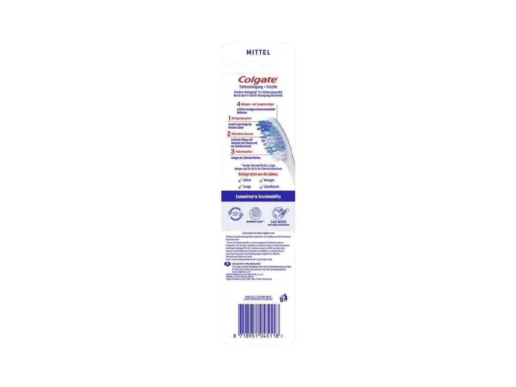 Tento dvojitý balíček zubních kartáčků od Colgate je navržen pro komplexní péči o ústní dutinu. Díky čtyřnásobnému čisticímu mechanismu odstraňuje plak, čistí mezizubní prostory a pomáhá odstraňovat bakterie způsobující zápach z úst.