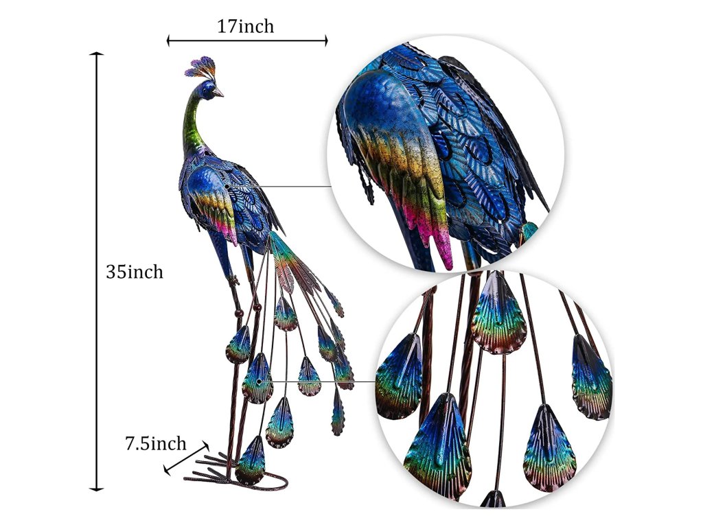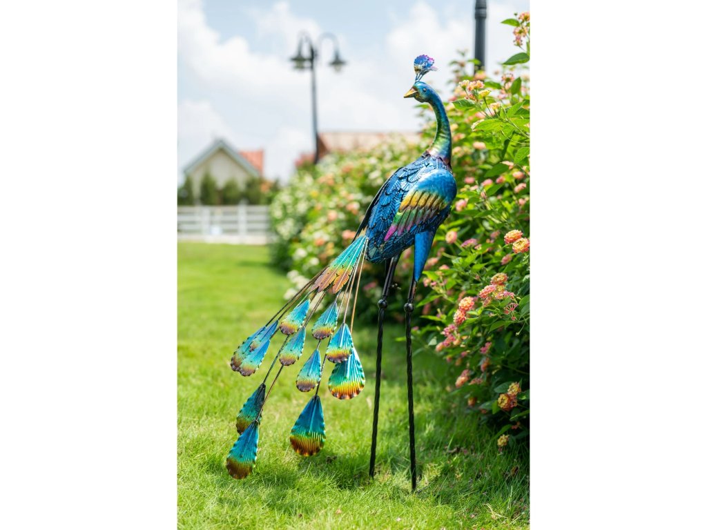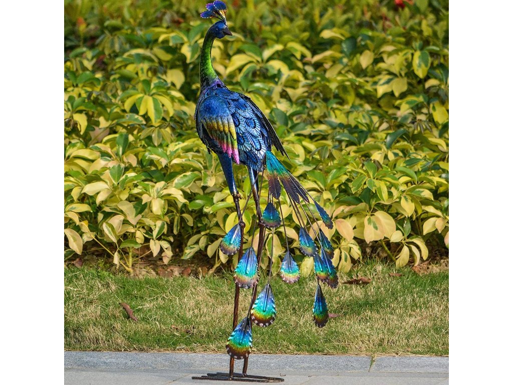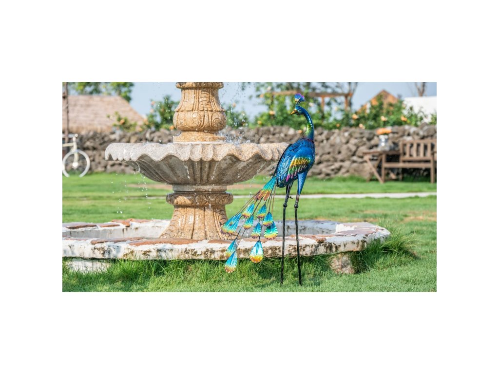 Ohromující 89 cm vysoká kovová socha páva Teresa's Collections s živými barvami, která se třpytí na slunci a stane se elegantní dominantou vaší zahrady. Odolná vůči povětrnostním vlivům díky kvalitnímu kovu a ochrannému laku.
