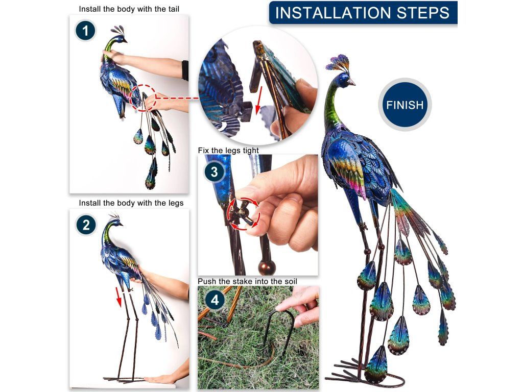 Teresa's Collections velká zahradní socha páva 89cm kovová dekorace