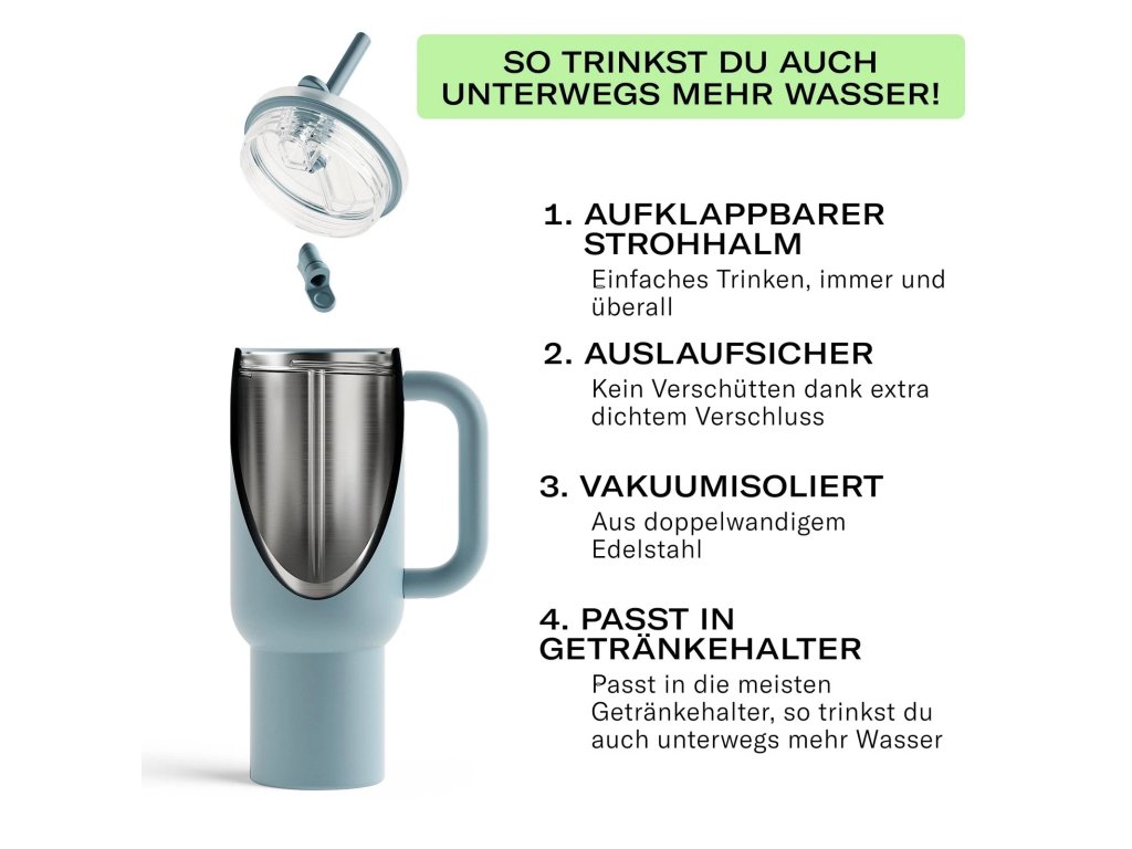 Klíčové vlastnosti Typ produktu: Termohrnek Značka: waterdrop Barva: Holubí modrá Materiál: Nerezová ocel Objem: 1,1 L Vlastnosti: Udrží nápoje studené až 12h, teplé až 6h, integrované brčko, nepropustný