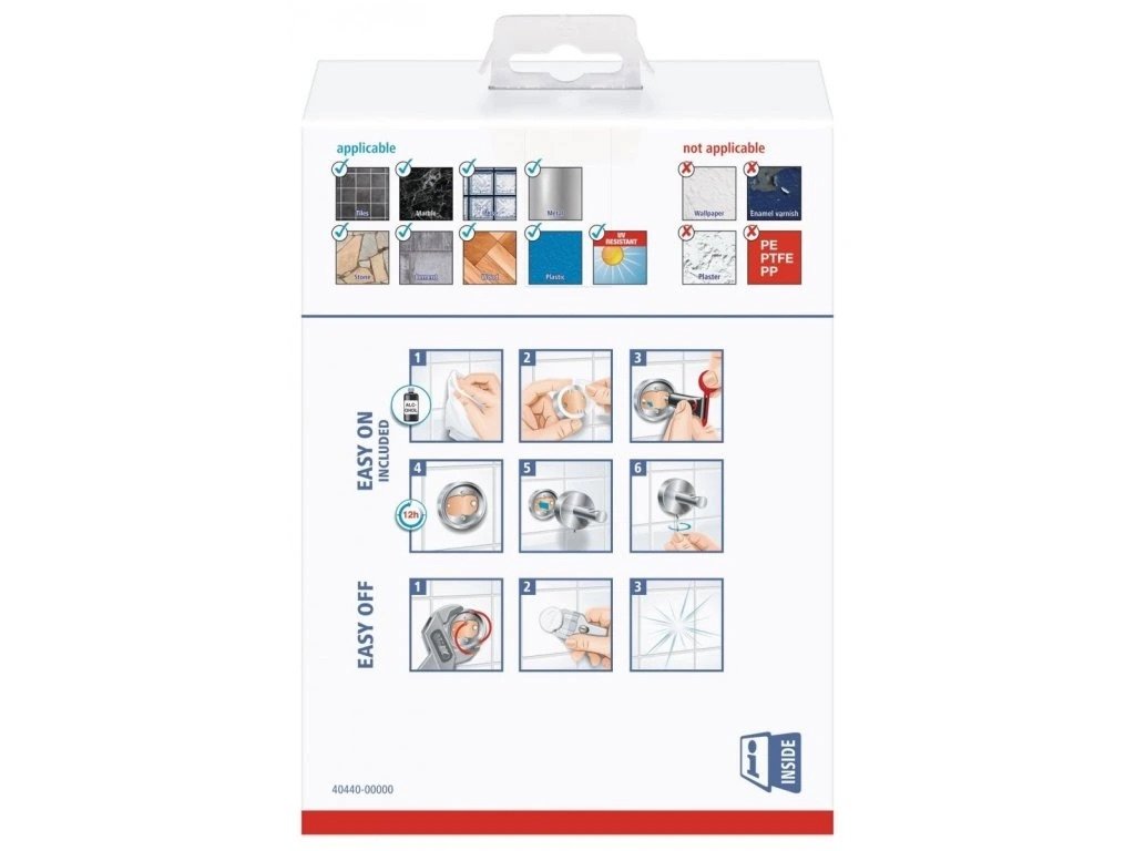 Dávkovač je vybaven patentovanou technologií tesa® Power.Kit, která představuje univerzální a spolehlivé řešení montáže pomocí lepidla. Díky tomu nebudete muset vrtat do obkladů či jiných povrchů a vyhnete se tak jejich poškození.