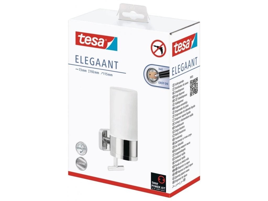 tesa® Elegaant dávkovač mýdla - spojení elegantního designu a spolehlivé montáže bez vrtání. Tento robustní dávkovač mýdla z řady tesa® Elegaant se stane stylovým a praktickým doplňkem vaší koupelny. Jeho jemný hranatý design a kvalitní materiály z něj činí skutečnou ozdobu.