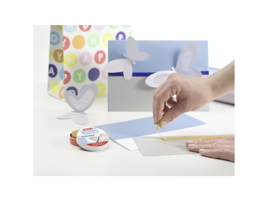 Lepicí páska TESA je dodávána ve vysoce kvalitní kovové plechové krabičce, která ji chrání před nečistotami a zaručuje dlouhou životnost. Je vhodná zejména pro ruční a dekorativní práce, jako je upevňování dekorací nebo vlepování fotografií do fotoalb.