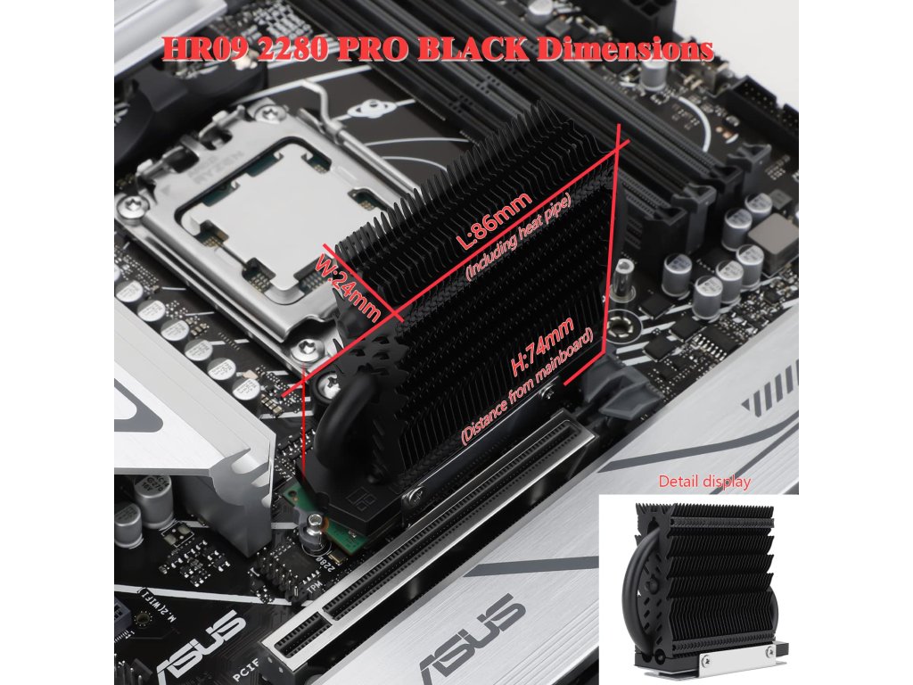 Thermalright HR-09 2280 PRO černý SSD chladič s oboustranným chlazením, nano termální podložkou a tepelnou trubicí. Pro M.2 SSD v PC a počítačích.