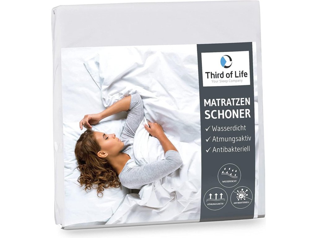 Third of Life X670 je vodotěsný a prodyšný chránič na matrace v bílé barvě o rozměrech 90 x 200 cm. Chrání matraci před tekutinami (pot, moč, krev) díky PU membráně a zároveň je prodyšný. Je vyroben z měkké, nemačkavé tkaniny, je hypoalergenní, testován OEKO-TEX standardem 100 a dermatologicky. Hodí se pro matrace s výškou můstku do 25 cm.