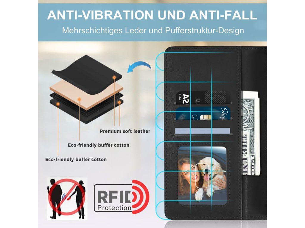 Pouzdro a peněženka 2 v 1 s RFID ochranou: Tento obal nabízí 3 sloty na karty a přihrádku na bankovky. Navíc disponuje integrovanou funkcí RFID ochrany, která zabraňuje krádeži informací z vašich bankovních karet, kreditních karet a dalších osobních karet. Zjednodušte si peněženku a chraňte svůj digitální život.