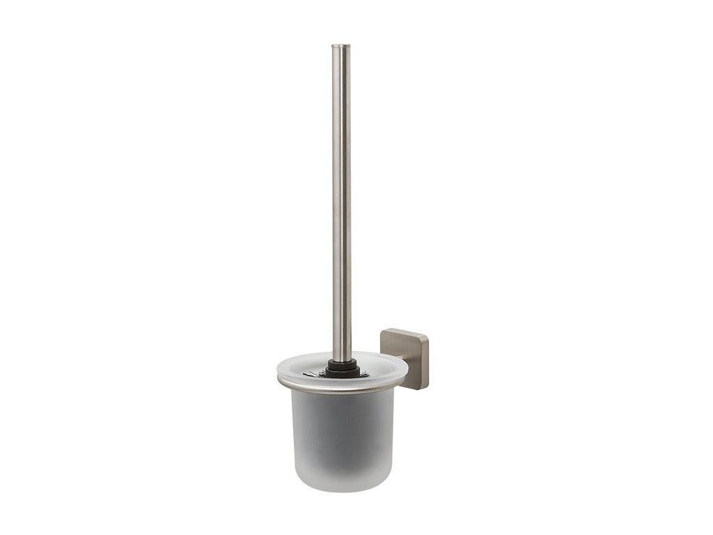 Kartáčovaná nerezová WC štětka Tiger Onu s oválným/kulatým držákem pro lepenou montáž na zeď. Rozměry 11 x 14,1 x 37,7 cm.
