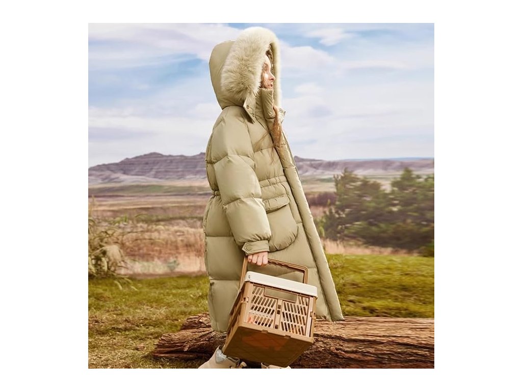 Kapuce s kožešinovým lemem dodává módní vzhled a zároveň poskytuje dodatečnou ochranu proti větru. Skrytý zip s knoflíkovou légou nabízí dvojitou ochranu proti chladu.