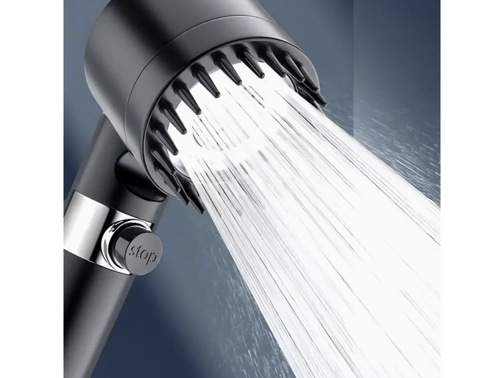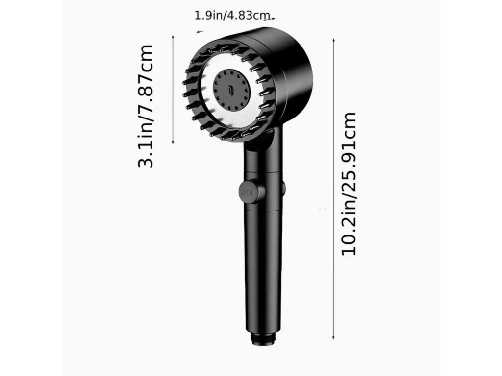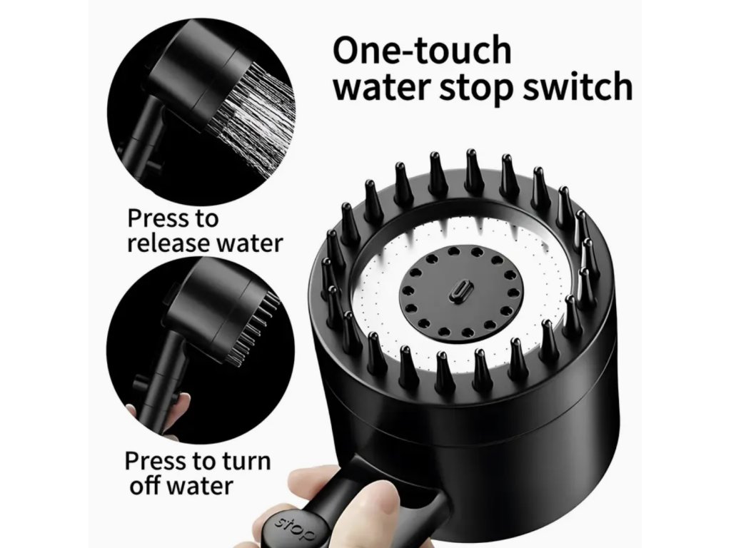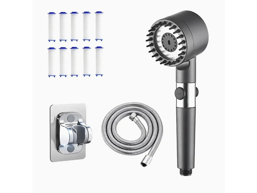 Tlaková masážní sprchová hlavice s 3 nastaveními, 10 filtry, 150 cm hadicí a snadnou montáží. Kulatý tvar, plastový materiál.