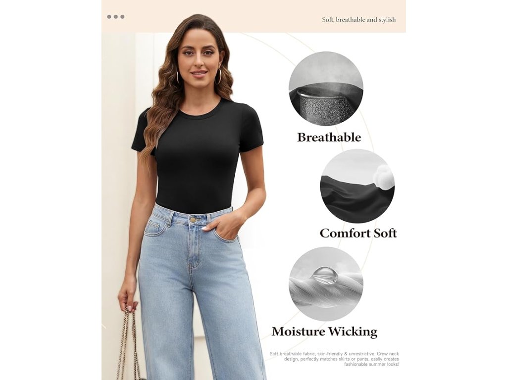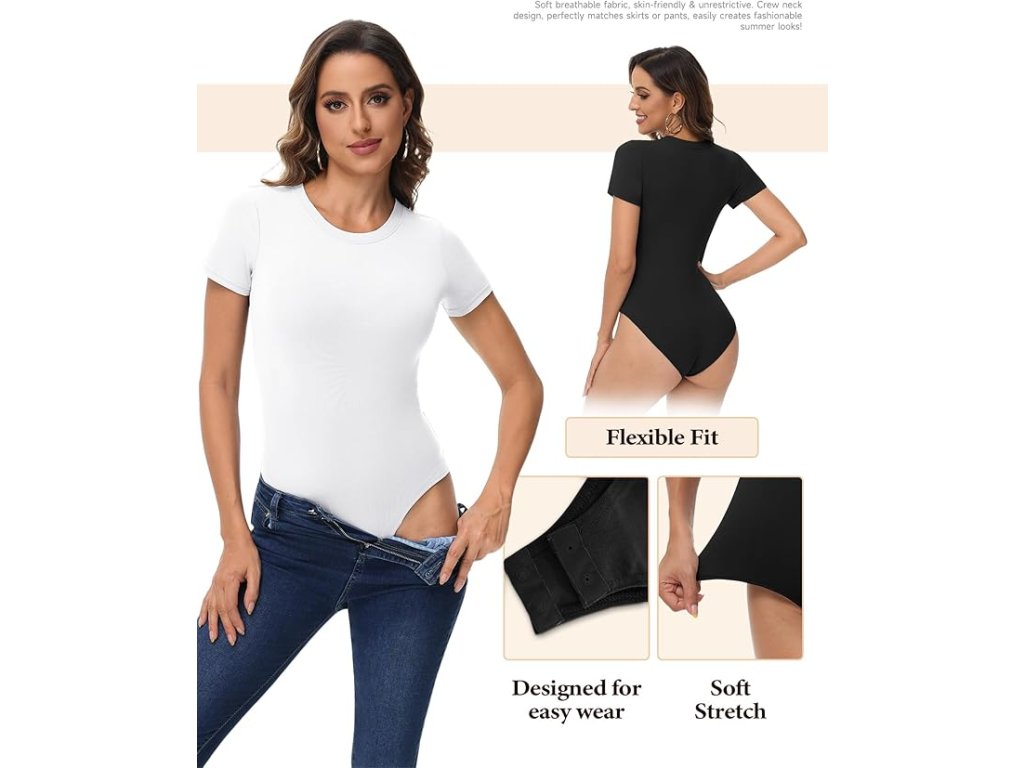 Toto dámské body s krátkým rukávem je navrženo pro zvýraznění siluety a maximální komfort. Vysoce elastický materiál obepíná tělo, tvaruje postavu a vytváří hladký vzhled pod oblečením.