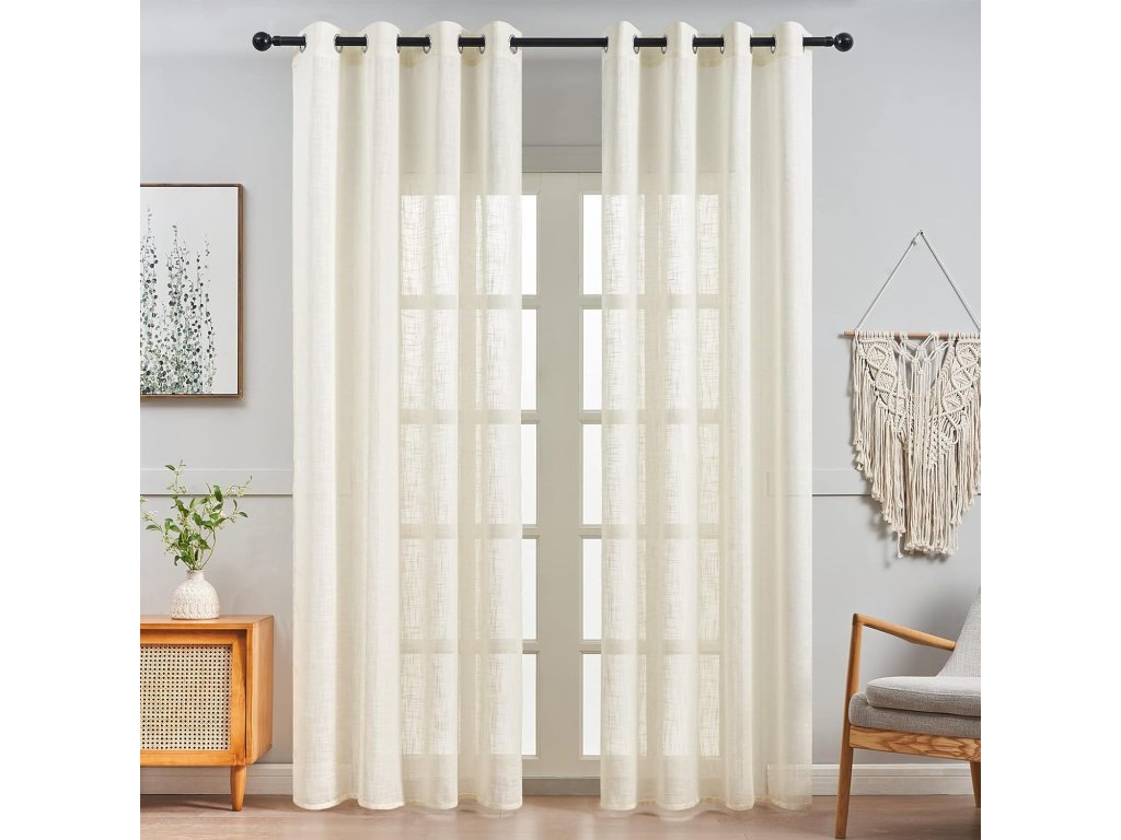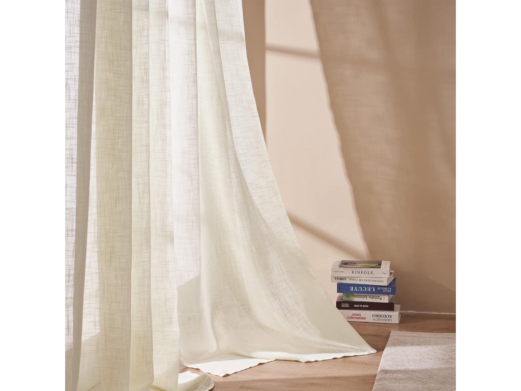 Tato sada dvou béžových záclon od značky Topfinel je ideální pro obývací pokoj, ložnici nebo kuchyni. Jsou vyrobeny z měkkého a odolného polyesteru s křížovým vzorem, což jim dodává elegantní a moderní vzhled. Záclony jsou poloprůhledné, propouštějí světlo a zároveň chrání vaše soukromí.
