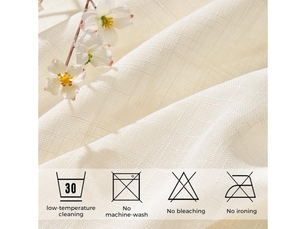 Vlastnosti: Záclony jsou prodyšné, rychleschnoucí a pratelné v pračce.