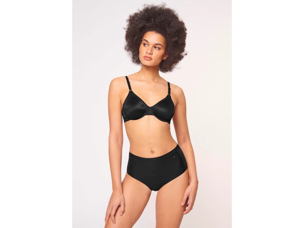 Konstrukce zahrnuje praktické detaily pro individuální přizpůsobení, jako jsou ramínka snadno nastavitelná na přední straně a zadní zapínání na háčky a očka se třemi polohami. Podprsenkový pás je decentně ozdoben pleteným logem Triumph. Díky složení s podílem vlákna LYCRA® je prádlo pružné a zachovává si svůj tvar i při častém používání. Tento model představuje kombinaci klasického designu a vysokého komfortu pro celodenní nošení.