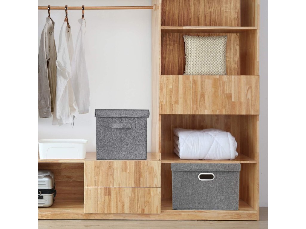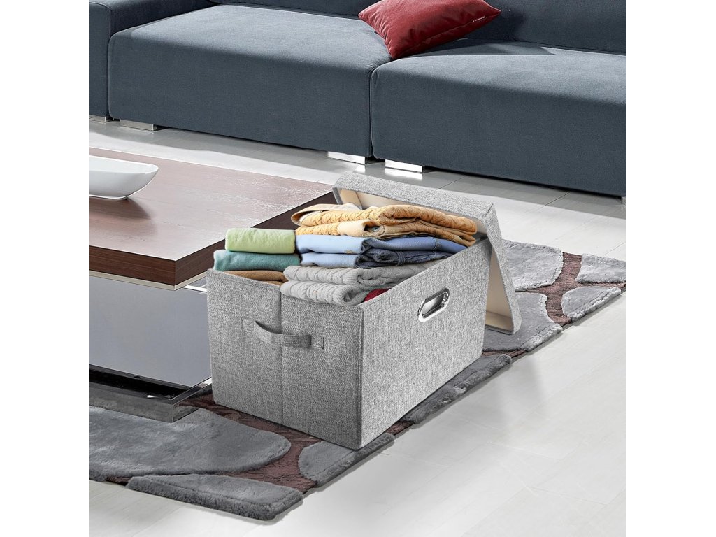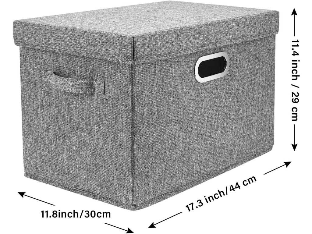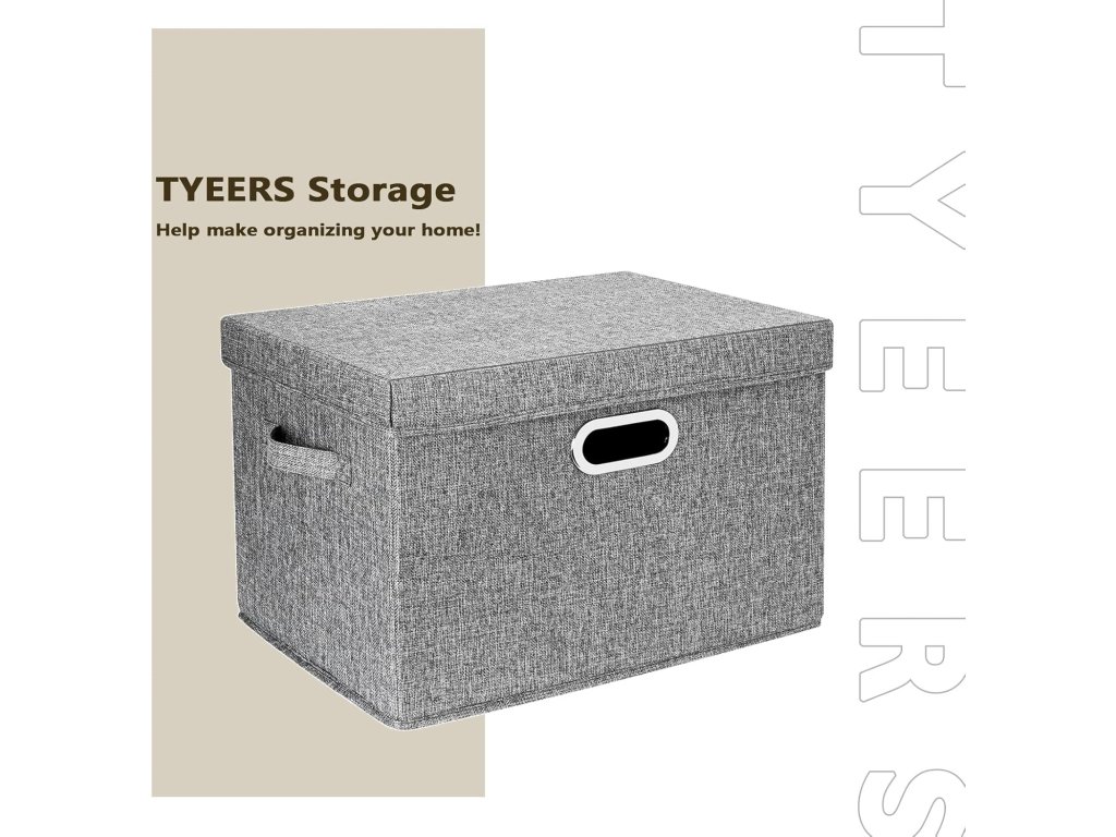 Velké úložné boxy TYEERS s víky pomohou snížit a skrýt nepořádek v domácnosti i kanceláři. Tyto skládací boxy usnadní organizaci ložnice, skříně, oblečení, studentské koleje, kanceláře, dokumentů, hraček i dětského pokoje. Jsou vyrobeny z vysoce kvalitních polyesterových tkanin bez zápachu, s vyšší pevností a delší životností než běžné netkané textilie. Podpora plastovými deskami zajišťuje lehkost, pevnost a stohovatelnost i ve vlhkém prostředí a odolnost proti deformaci. Pratelné provedení umožňuje snadné čištění. Boxy lze složit pro úsporu místa. Větší víka a tři úchyty (dva boční a jeden přední) usnadňují manipulaci. Sada obsahuje 3 šedé boxy o rozměrech 43.9 x 30 x 29 cm.