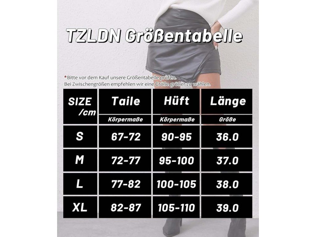 Dámská skort TZLDN nabízí elegantní vzhled sukně a pohodlí kraťasů v jednom. Moderní asymetrický design a koženkový materiál z ní dělají stylový kousek, který snadno doplní jakýkoliv outfit.