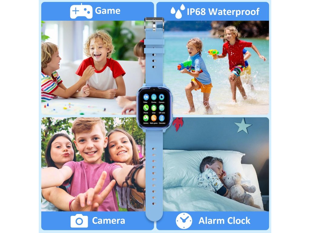 Zařízení nabízí také řadu funkcí pro každodenní život a zábavu. Obsahuje 7 logických her pro rozvoj postřehu a myšlení, budík a fotoaparát. Aby hodinky neodváděly pozornost během vyučování, je k dispozici školní režim, který umožní zablokovat hovory a zábavní funkce ve zvolených časových intervalech. Konstrukce splňuje přísný standard voděodolnosti IP68, což dovoluje běžný kontakt s vodou při hraní. Displej s vysokým rozlišením je opatřen ochranou proti modrému světlu, která šetří dětský zrak.