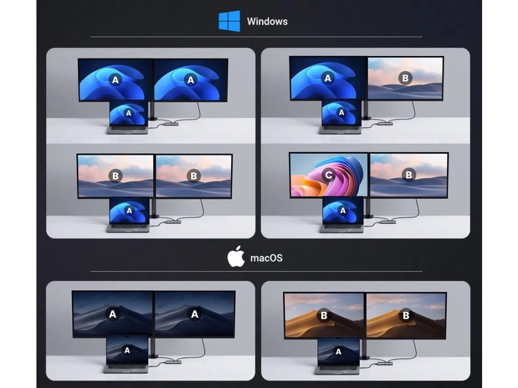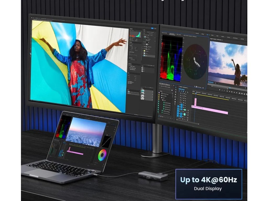 S tímhle UGREEN replikátorem portů získáš k tvému počítači hned několik nových možností připojení! Má dva klasické USB porty (USB-A), kam můžeš zapojit třeba myš nebo klávesnici. Taky má dva HDMI konektory, takže si k počítači můžeš připojit rovnou dva monitory a mít tak větší pracovní plochu nebo si třeba pouštět filmy na větší obrazovce.