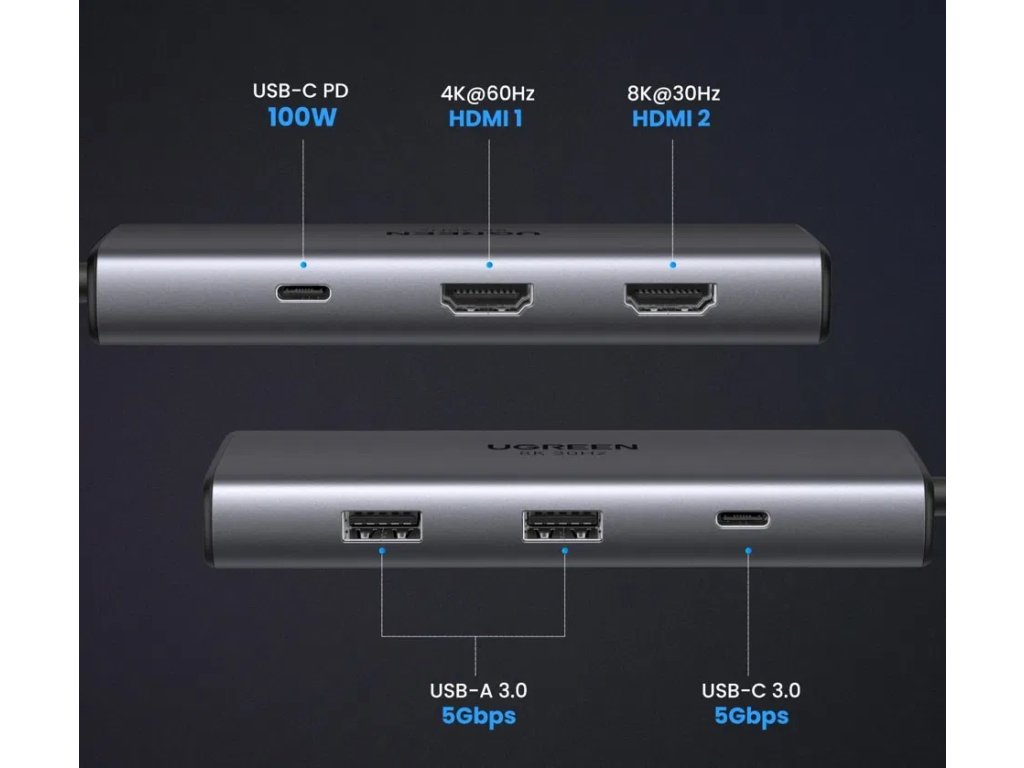 UGREEN USB-C hub 6v1 2x HDMI 2x USB 3.0 100W PD