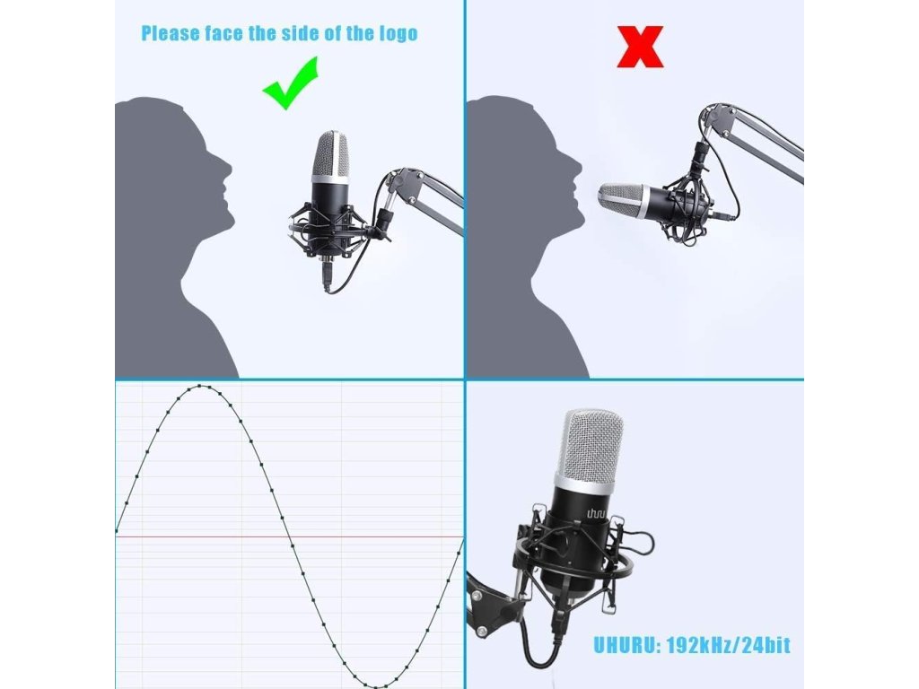 Uhuru Profesionální USB kondenzátorový mikrofon s pokročilým čipsetem nabízí vzorkovací frekvenci 192 kHz / 24 bit pro čistý a realistický zvuk.