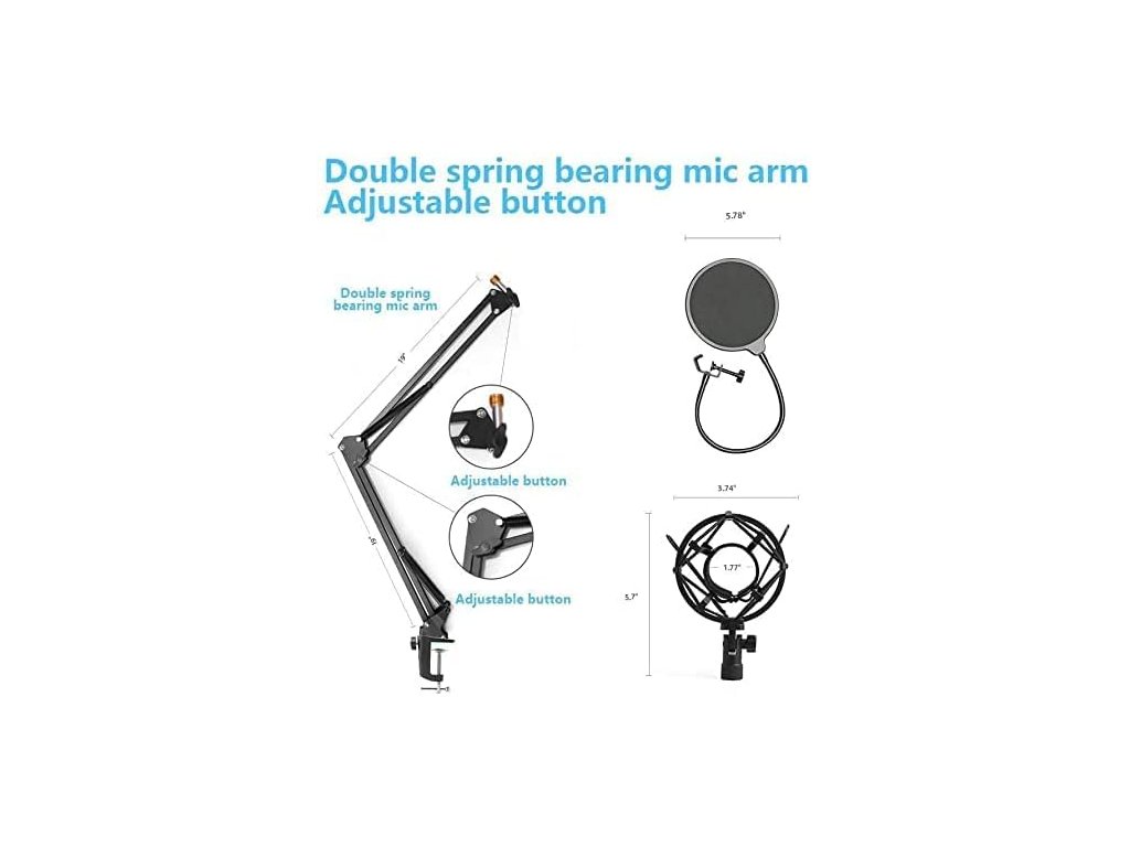 Odolné rameno: Nastavitelný nůžkový držák mikrofonu je vyroben z robustní a odolné oceli.