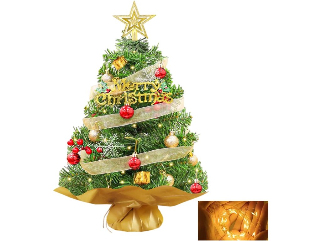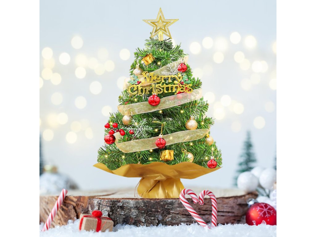 Umělý vánoční stromeček TAZZOR s osvětlením a dekoracemi 60 cm