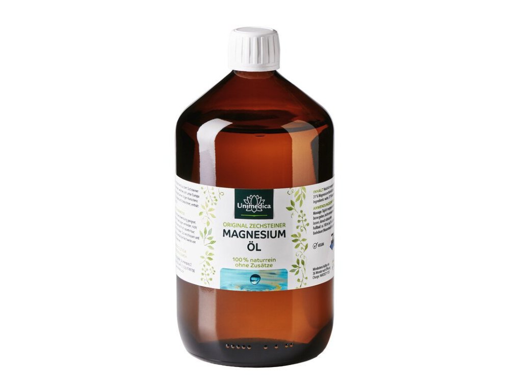 Hořčíkový olej Original Zechsteiner od Unimedica je vysoce koncentrovaný roztok chloridu hořečnatého, který je získáván z hloubky více než 1500 metrů, kde je chráněn před vnějšími vlivy. Díky své olejové konzistenci se snadno vstřebává do pokožky, kde působí obzvláště blahodárně na unavené a namáhané svaly po fyzické aktivitě. Při prvním použití může dojít k jemnému brnění nebo zarudnutí pokožky, což je normální reakce. Pro postupné přivyknutí se doporučuje buď zkrátit dobu působení, nebo roztok zředit čistou vodou. Produkt je veganský a bez jakýchkoliv přísad.