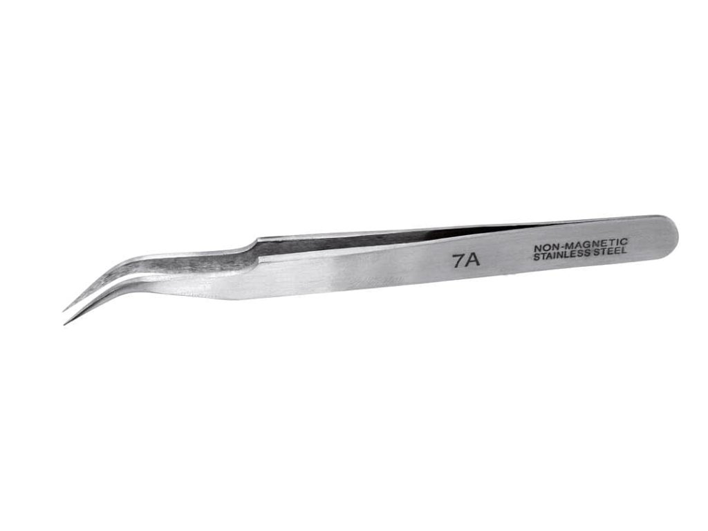Zakřivený design špiček pinzety poskytuje uživateli optimální úhel a přístup k obtížným místům: