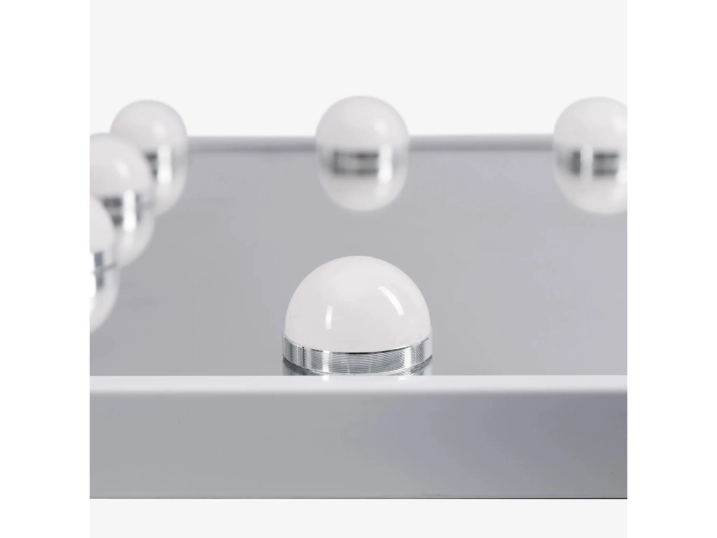 S tímto zrcadlem dosáhnete dokonalého líčení v každé situaci. Díky 12 LED žárovkám, které se dají plynule stmívat, si můžete přizpůsobit osvětlení svým potřebám. Můžete si vybrat ze tří barevných teplot, což vám umožní dokonale vyladit líčení pro denní i večerní příležitosti.