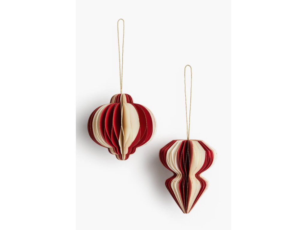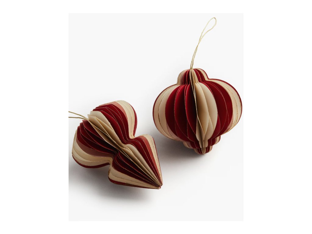 Vánoční papírové ozdoby s proužkem červené 2 ks