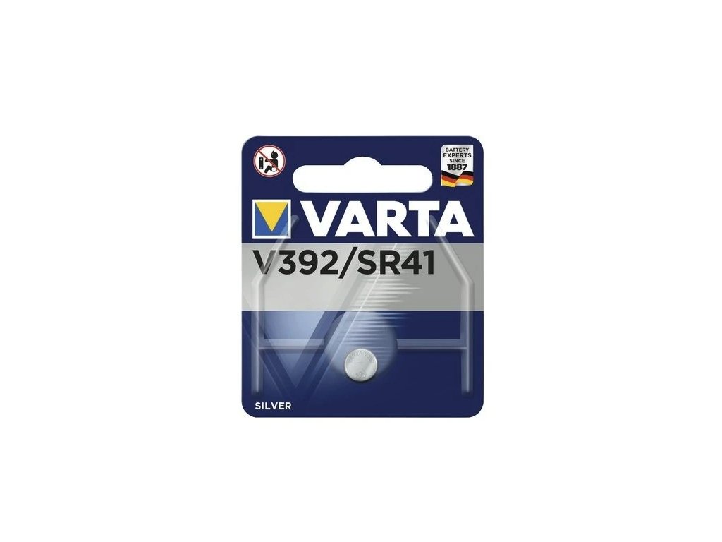 Varta V392 je stříbrooxidová knoflíková baterie o napětí 1,55V a kapacitě 37mAh. Má rozměry 7,9 mm (průměr) x 3,6 mm (výška) a váží 0,6 g. Je vhodná pro provozní teploty od -10 do +50 °C a je alternativou k označením jako SR41SW, SR41, SR736 a dalším. Balení obsahuje 1 kus.