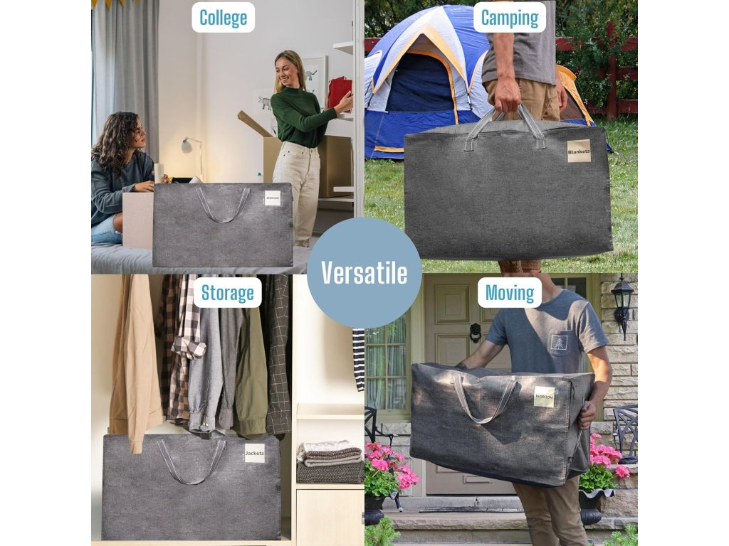 Skladnost a udržitelnost Na rozdíl od klasických kartonových krabic jsou tyto tašky opakovaně použitelné a představují ekologičtější variantu stěhování.