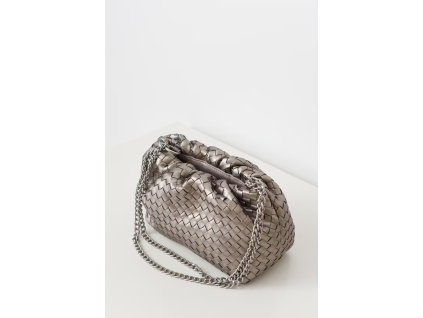 Pletená psaníčka v šedé barvě s řetízkovým popruhem a magnetickým zapínáním.