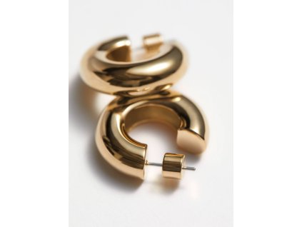 Elegantní kruhové náušnice ve zlaté barvě, které jsou vyrobené z recyklované mosazi. Jsou navrženy tak, aby decentně zvýraznily obličej.