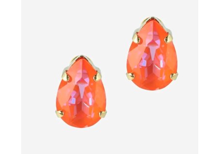 Elegantní náušnice Drop od značky Otazu ve zlaté a oranžové barvě. Jsou vyrobeny z mosazi, pozlacené a zdobené krystaly a perlami Swarovski.