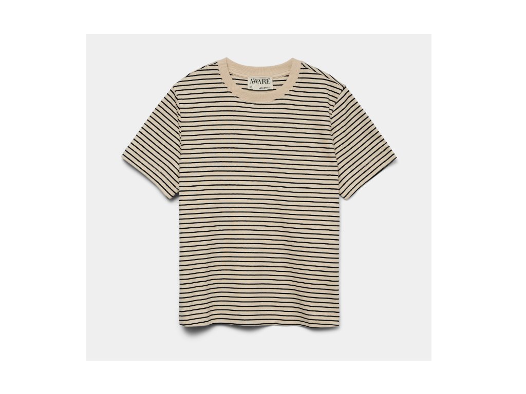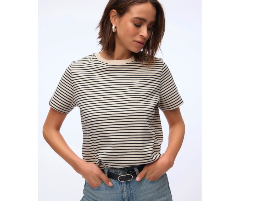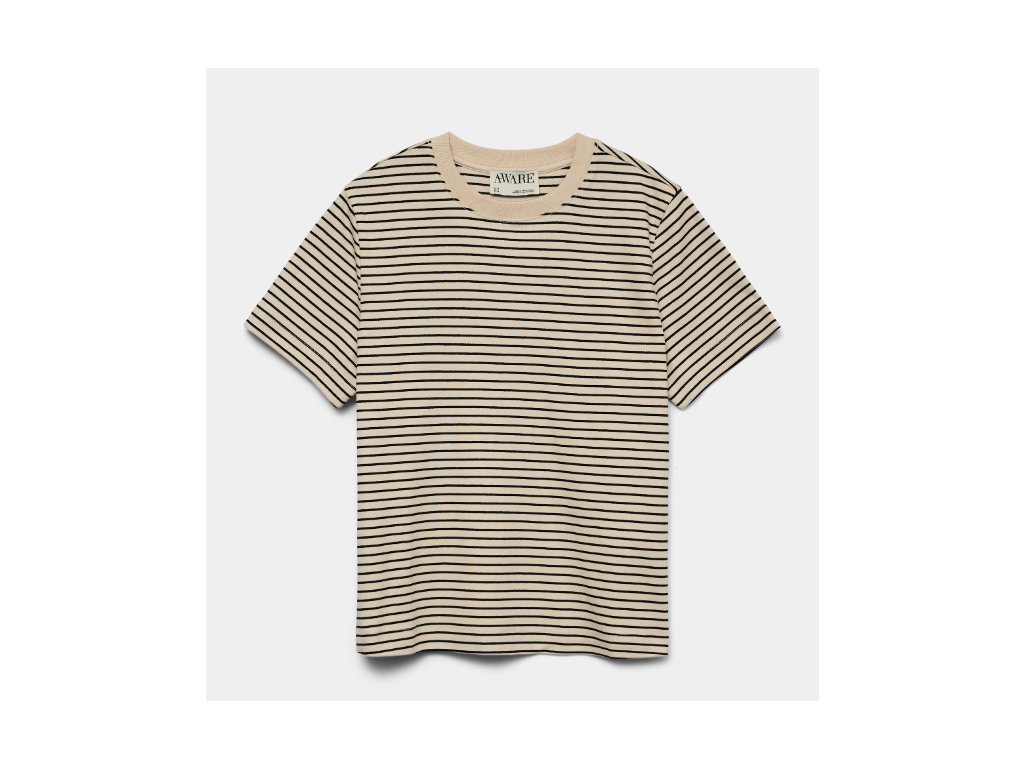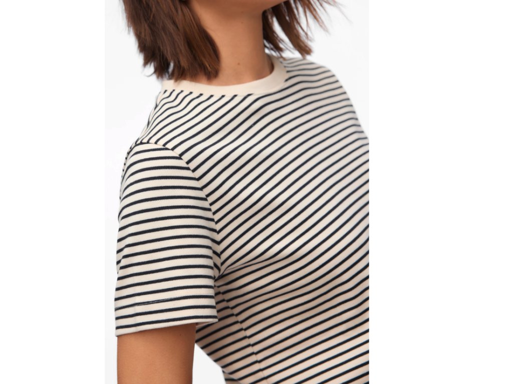 Tričko je navrženo v pohodlném střihu regular fit s kulatým výstřihem a moderními pokleslými rameny, což dodává oděvu uvolněnou siluetu. Klasický pruhovaný vzor v kombinaci s kvalitním přírodním materiálem z něj činí ideálního společníka pro každodenní nošení. Díky svému designu se skvěle hodí k boyfriend džínám a robustním teniskám pro městský styl, nebo jej lze využít jako základní vrstvu pod bundu či sako. Organická bavlna zajišťuje, že si tričko zachovává svou měkkost a barvu i při pravidelné údržbě.