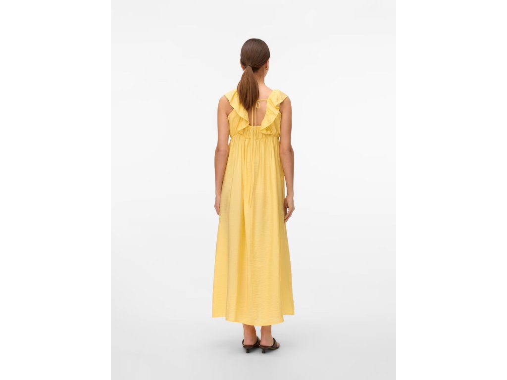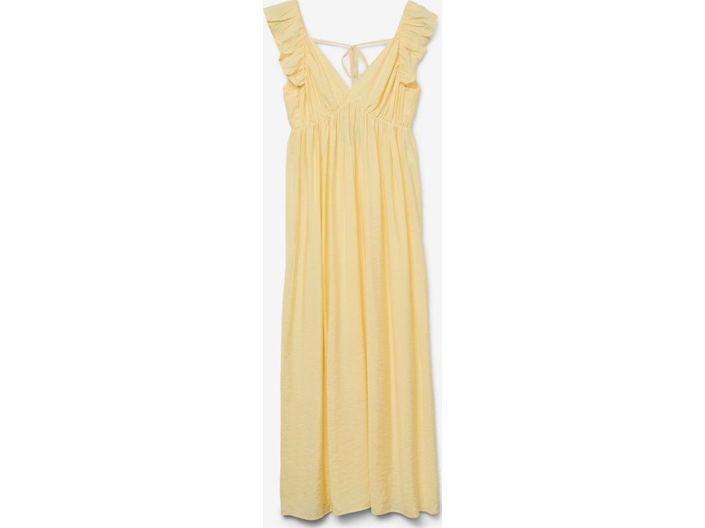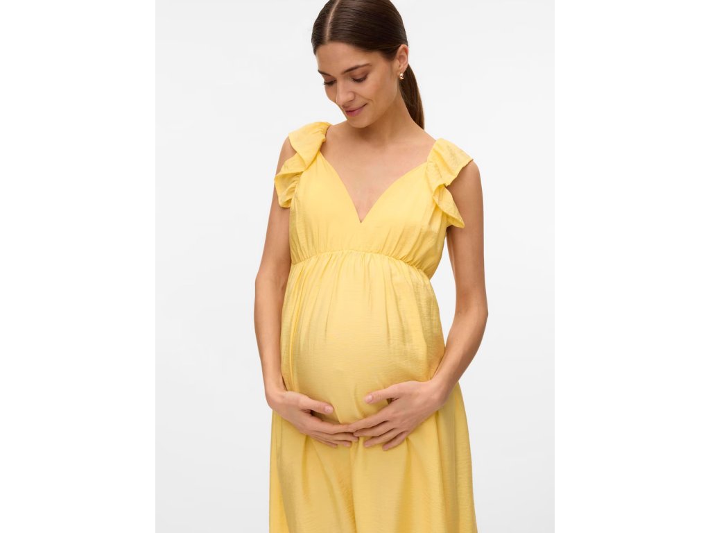 Model VMMJosie od značky Vero Moda Maternity je navržen tak, aby se přizpůsobil měnící se postavě během těhotenství a zajistil budoucí mamince pocit komfortu i elegance. Šaty jsou vyrobeny z jemné tkaniny kombinující viskózu (Livaeco by Birla Cellulose™) a polyamid, což materiálu dodává lehkost, vzdušnost a charakteristický splývavý efekt. Jednobarevné provedení ve světle žluté barvě je ideální pro letní dny i slavnostnější příležitosti.