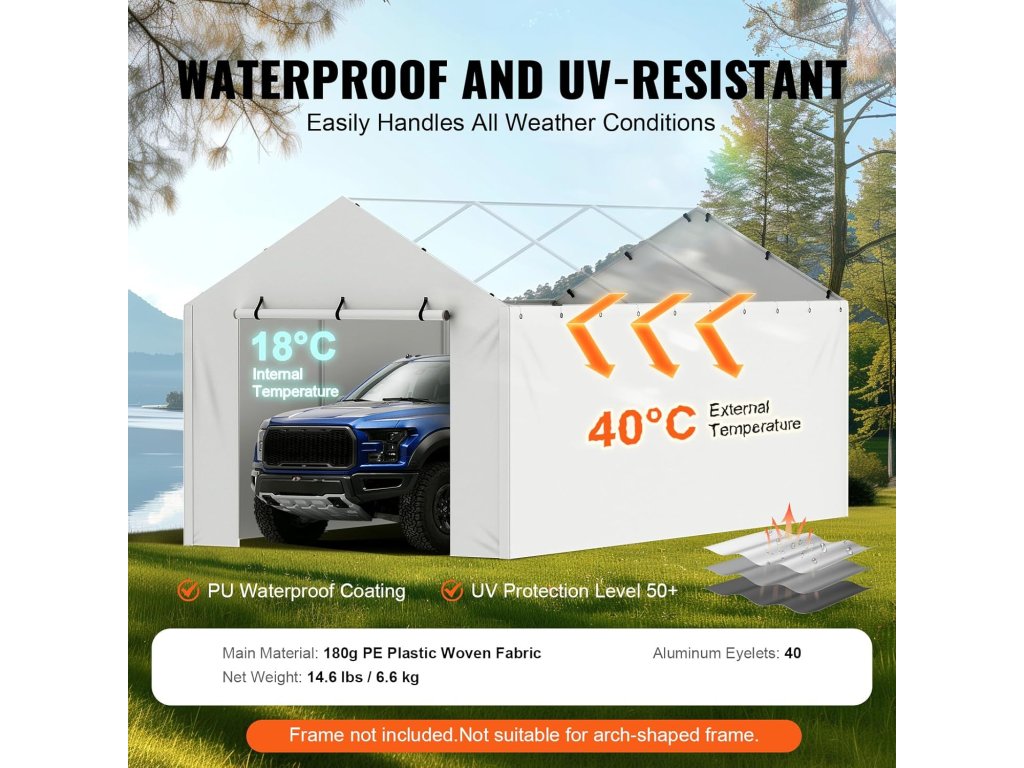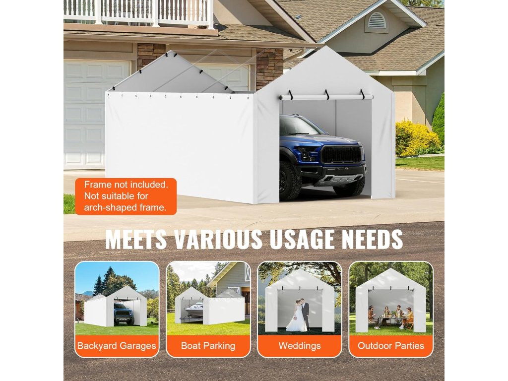VEVOR boční stěna ke garážovému stanu, 3 x 6 m, bílá