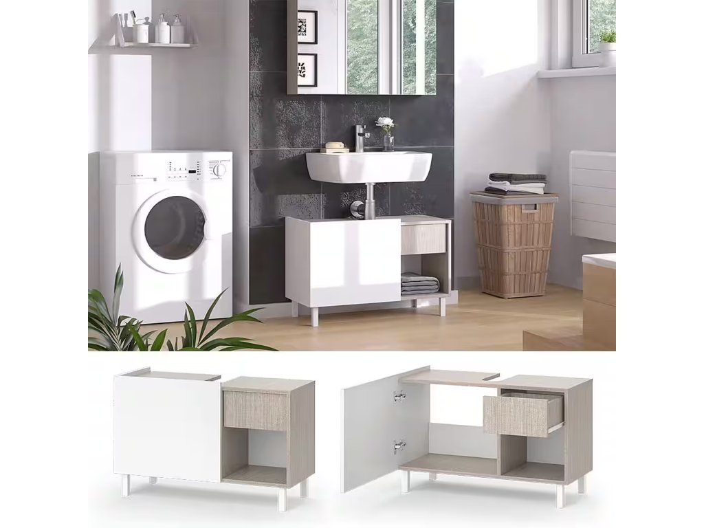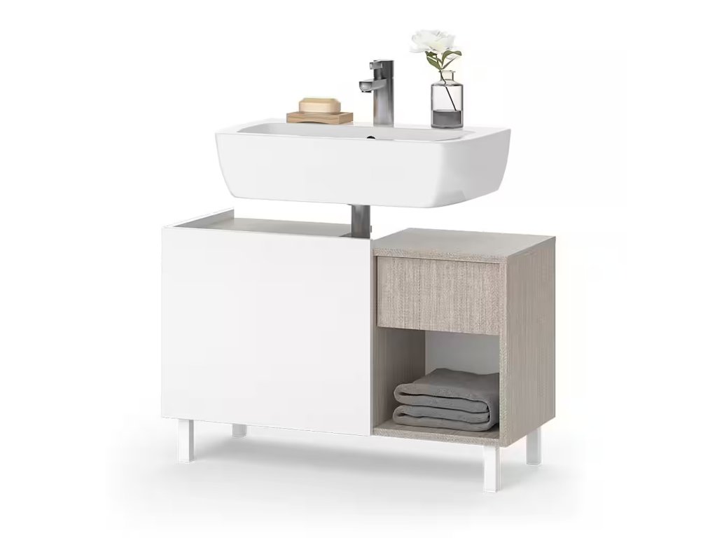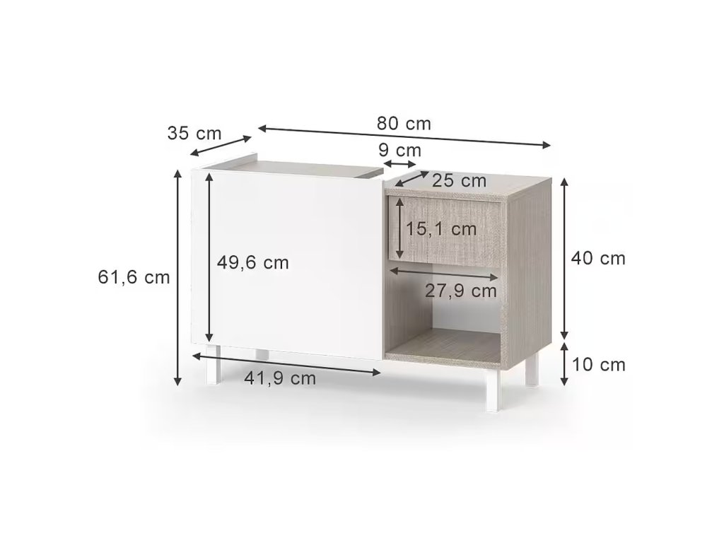 Moderní umyvadlová skříňka VICCO Arianna v šedobílém provedení s rozměry 80 x 52 x 35 cm (šířka x výška x hloubka) a hmotností 14 kg. Součást série Arianna, s elegantním dvoubarevným designem, který upoutá pozornost v každé koupelně. Praktická 1 zásuvka poskytuje úložný prostor. Snadno udržovatelný povrch pro bezproblémové čištění. Jednoduchá montáž díky přiloženému návodu.