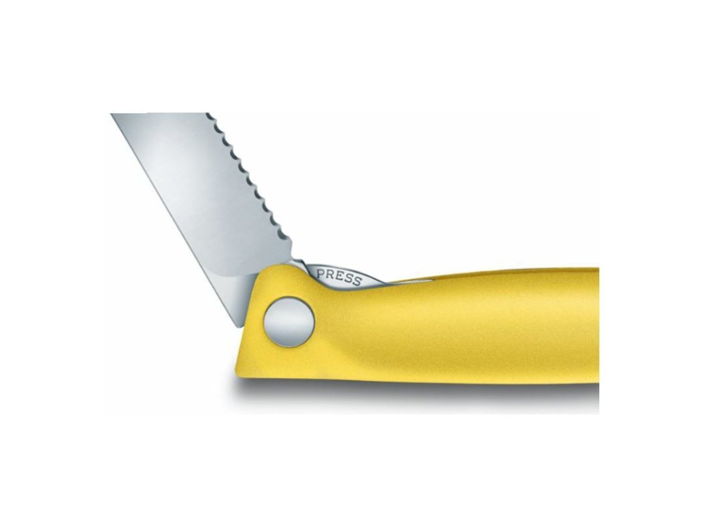 Díky své skládací konstrukci je nůž bezpečný a snadno přenosný v kapse, piknikovém košíku či batohu. Žlutá barva rukojeti je nejen stylová, ale také usnadňuje nalezení nože.