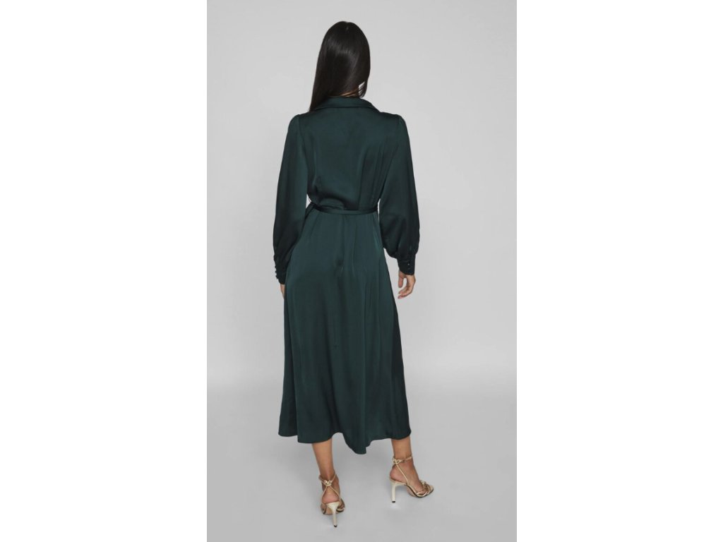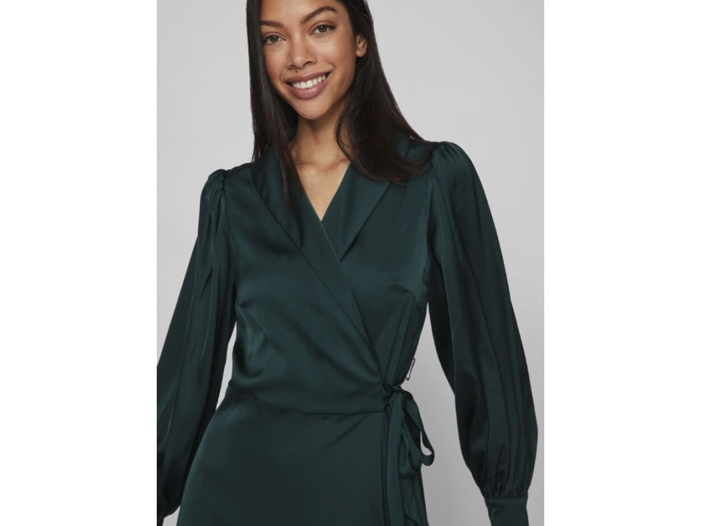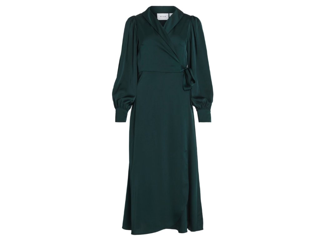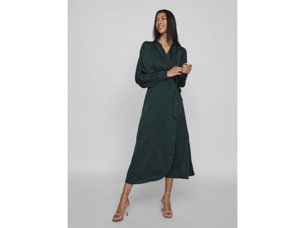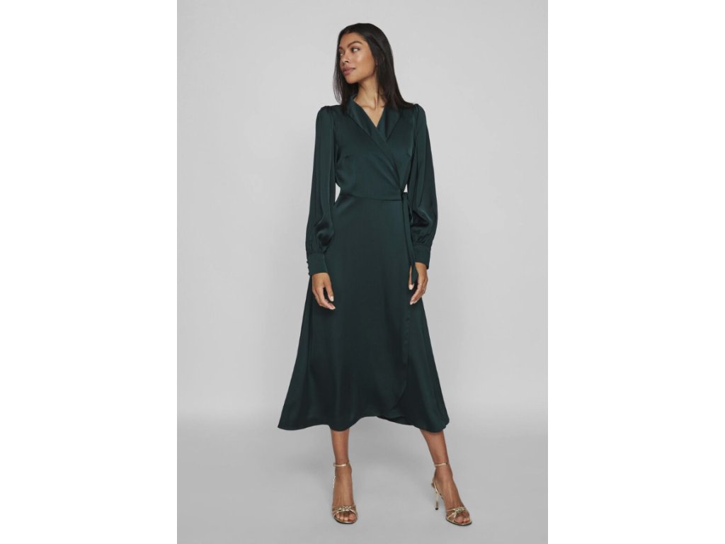 VILA dámské saténové zavinovací midi šaty s dlouhým rukávem 36